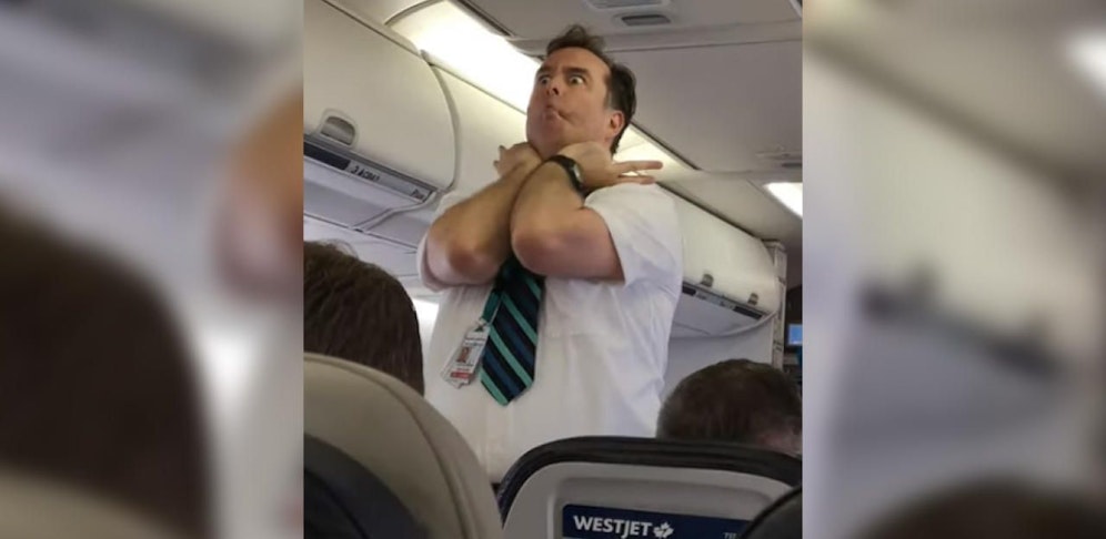 Ein Flugbegleiter von Westjet Airlines sorgt für Lacher. Seine Darbietung der Sicherheitsinstruktionen landete per Video im Netz und begeistert Tausende User.