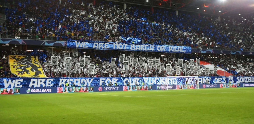 Salzburg fordert Liverpool im "Finale dahoam". Die Bullen ließen sich für den Showdown in der Champions League eine besondere Choreo im Red-Bull-Design einfallen. Die kommt nicht überall gut an.