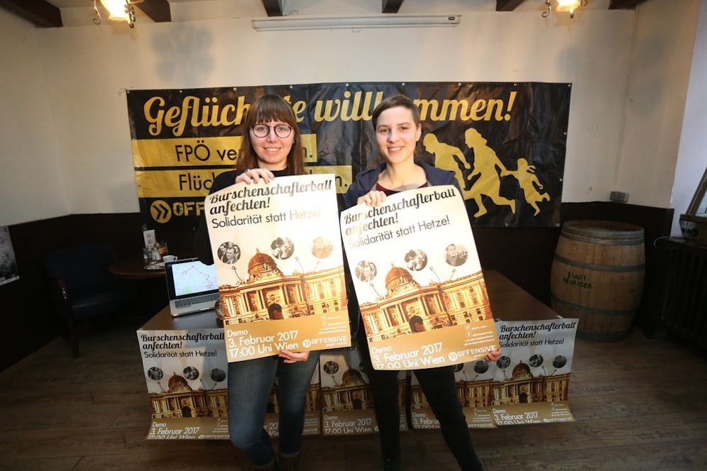 "Wir demonstrieren gegen diesen Ball, weil er ein Ball der FPÖ ist", erklärt Magdalena Augustin von der "Offensive gegen Rechts". Und: "Es ist wichtig, ein starkes Zeichen gegen Rassismus und Faschismus zu setzen."