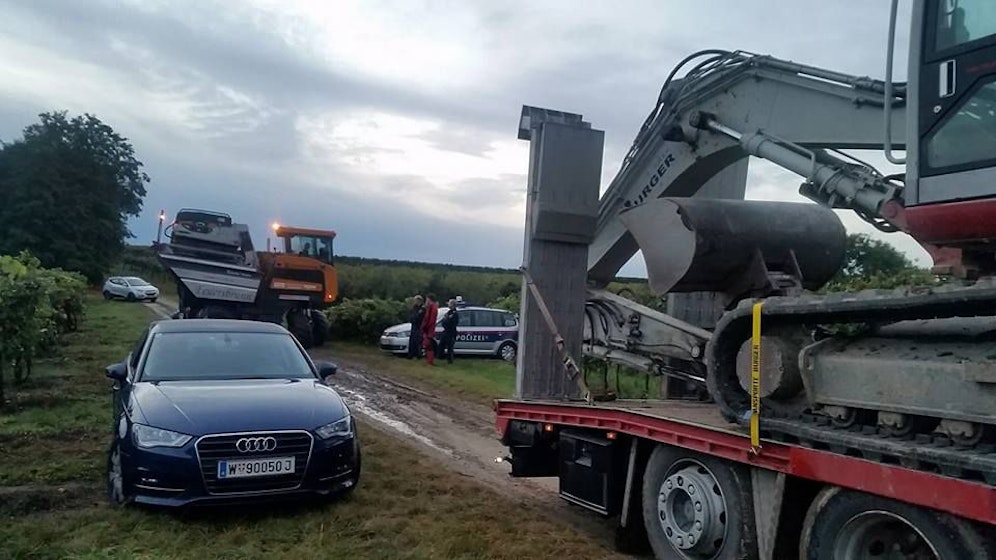 30 Aktivisten des Vereins "Rettet den Wagram" wollten gestern den Baubeginn des buddhistischen Stupa-Tempels bei Grafenwörth (Bezirk Tulln) verhindern. Die Polizei schützte Bagger und Lkw.