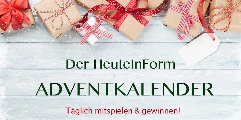 Es ist wieder soweit! Der "HeuteInForm"-Adventkalender ist prall gefüllt und wartet darauf, geplündert zu werden. Hinter 24. Türchen haben wir sportliche und gesunde Preise versteckt, die Ihnen die Vorweihnachtszeit versüßen sollen. Also täglich Türchen öffnen & Gewinne abstauben.