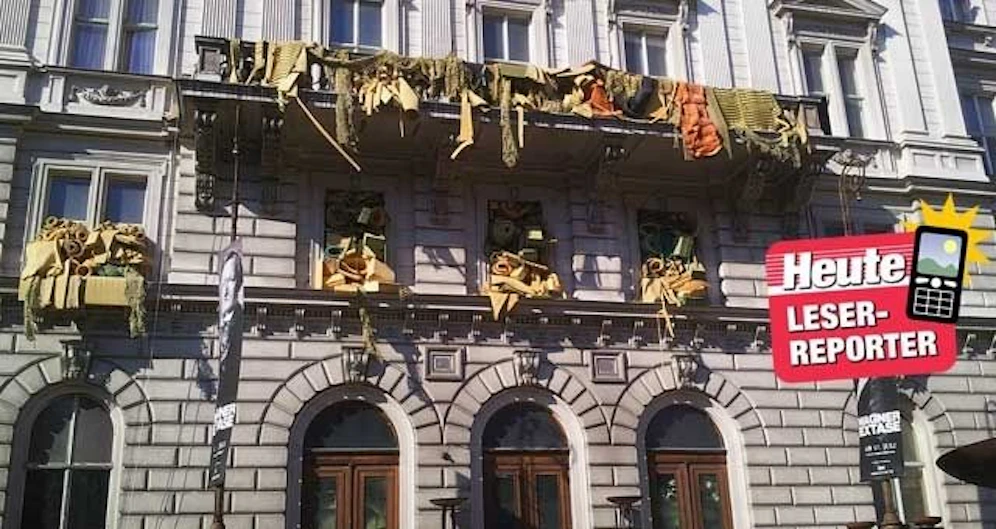 Undichte Fenster sind ein wohlbekanntes Übel in vielen Altbauwohnungen. In diesem Haus in der Wipplingerstraße dürfte das allerdings kein Problem mehr sein. Leserreporterin Aria Söllner, die den skurrilen Anblick in der Wiener Innenstadt knipste, mutmaßt, dass es sich wohl um eine Kunstaktion handelt.