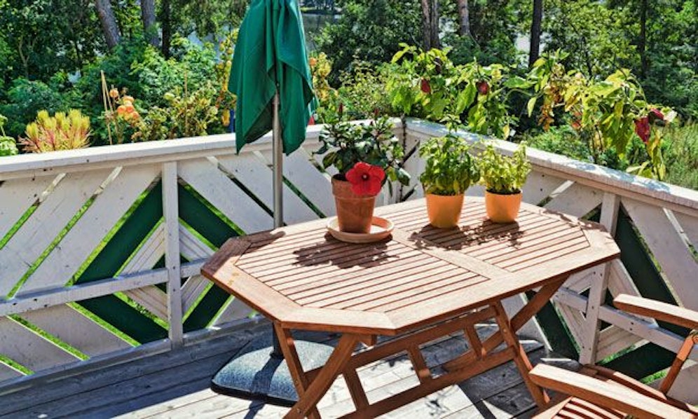 Gehört Ihnen die Wohnung oder das Haus, können Sie den Balkon umfangreicher sanieren. Outdoor-Fliesen oder ein Holzdeck als Bodenbelag sind derzeit ziemlich modern. Letzteres ist besonders bei hohen Temperaturen im Sommer auf dem Balkon viel angenehmer unter den Füßen als glühend heiße Steinplatten.