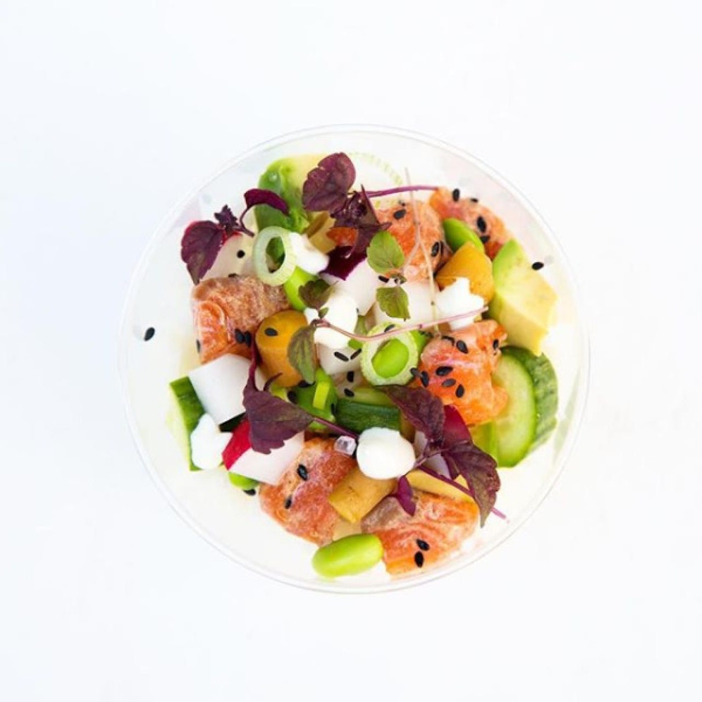 "Poke" bedeutet auf hawaiianisch "in Stücke schneiden". Traditionell ist darin roher Fisch mit Frühlingszwiebeln, Edamame oder Avocado enthalten. Hinzu kommen Reis und eine Soße, die eine Mischung aus Sojasoße und Sesamöl ist.