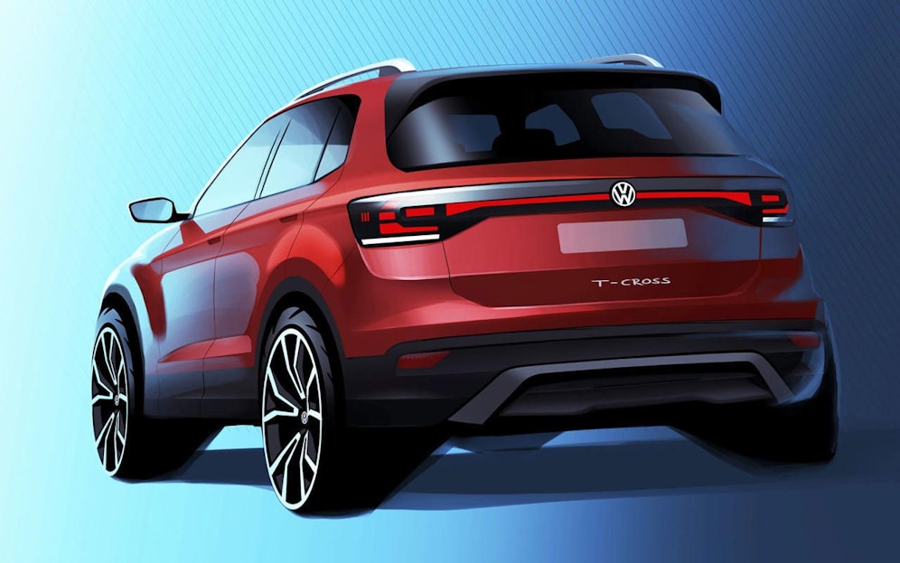 Mit dem T-Cross möchte VW gegen Peugeot 2008, Seat Arona oder Kia Stonic antreten. Das Design wird sich dabei am T-Roc orientieren, wobei das Heck der ersten Zeichnung auch an den Seat Arona erinnert.