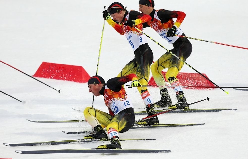 Auf dem Weg zu einem Dreifach-Erflog in der Nordischen Kombination fuhren sich die Deutschen gegenseitig über den Haufen. Die Norweger profitierten von dem Crash. Graabak holte Gold vor Moan. Eine deutsche Medaille gab es dennoch: Bronze für Riessle.