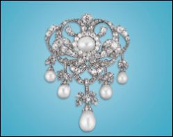 Das mit 15 Orientperlen und 25 ct Diamanten besetzte Diadem und die ebenso prachtvolle Brosche, genannt Corsage, bestechen nicht nur durch die verarbeiteten Diamanten sondern auch durch die zahlreichen und höchst seltenen Orientperlen, die damals in ganz Europa groß in Mode waren. Sie sind ein Symbol für Schönheit, Macht und Einfluss.