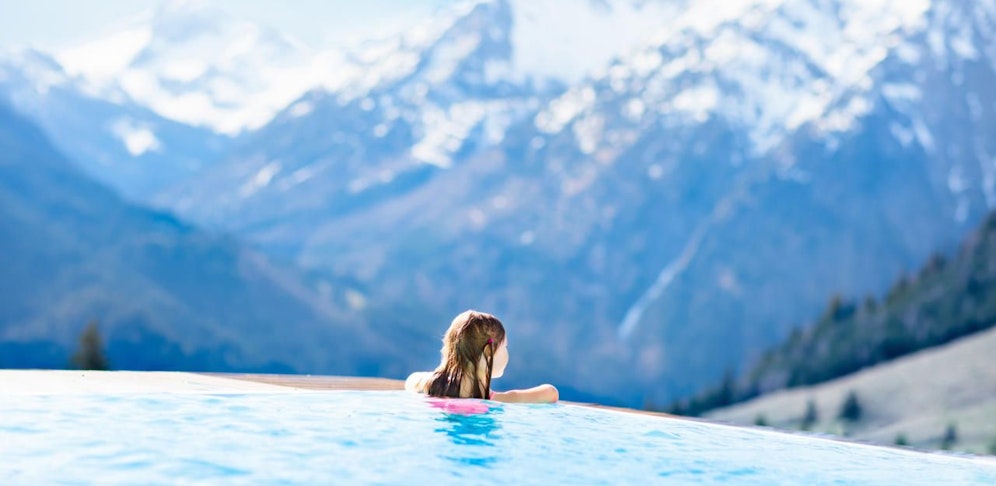 Direkt beim Wilden Kaiser in Kitzbühel breitet sich das Hotel auf 12.000 Quadratmeter Fläche mit einem eigenen Bauernhof aus. Von Indoor- und Outdoorpools hat man die beste Aussicht über die malerischen Bergwelten Tirols.
