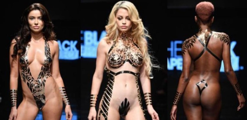 Tatsächlich braucht man für das Outfit nur schwarzes, goldenes oder Klebeband in einer anderen Farbe, das man in verschiedenen Formen auf den nackten Körper klebt. Bisher traten Models des Labels damit nur auf Partys auf. Die neue "Modelinie" ist allerdings für den Strand-Look 2019 ausgelegt. Es soll fest halten und sich auch beim Schwimmen nicht lösen. Sagt zumindest der Designer. (rfi)