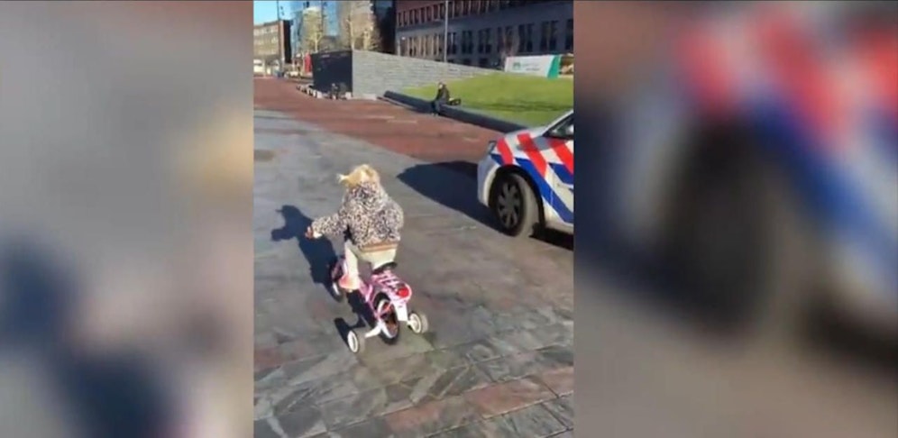 Holländische Polizisten liefern sich mit einer Dreijährigen auf ihrem Fahrrad mit Stützrädern ein Rennen. Das superherzige Video geht gerade viral.