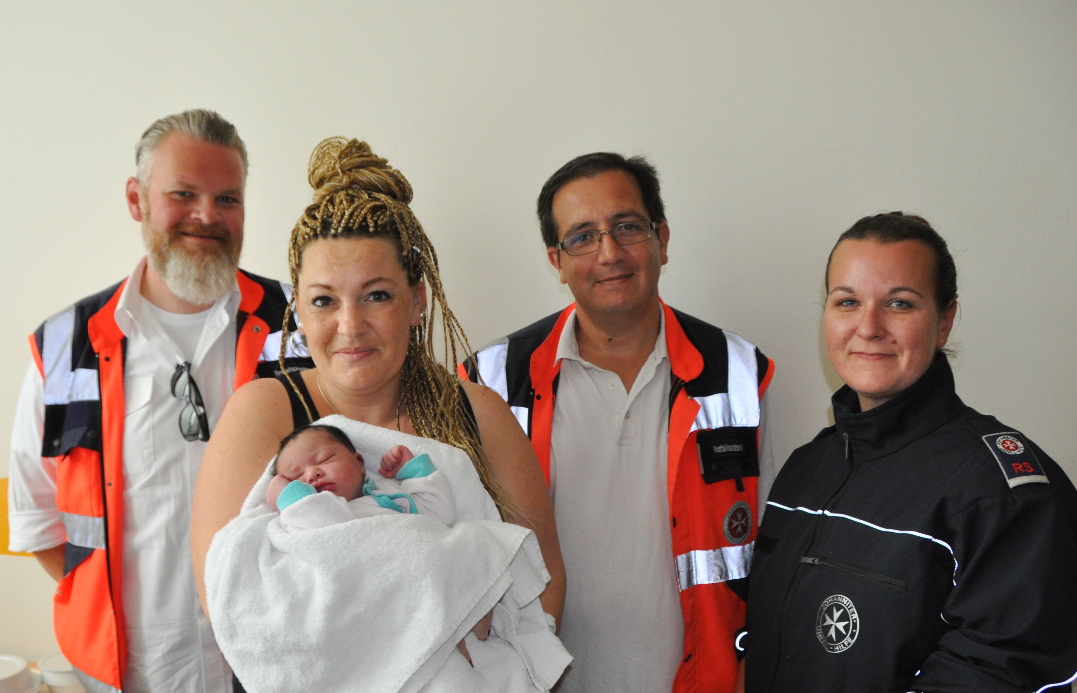 "Wir mussten kurz vor der Rudolfstiftung anhalten, da bereits der Kopf des Babys zu sehen war", berichtet die ehrenamtliche Rettungssanitäterin Daniela Weismeier-Sammer. Gemeinsam mit den Notfallsanitätern Thomas Spring und Stephan Sammer betreute sie die Mutter. Die Geburt verlief sehr schnell und ohne Komplikationen.