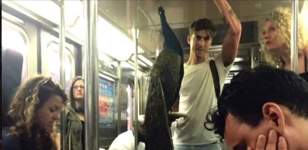 Selbst Menschen, die viel Zug fahren, dürften solche Bilder selten bis noch nie gesehen haben. Oder sind Sie schon einmal neben einem Pfau gesessen?