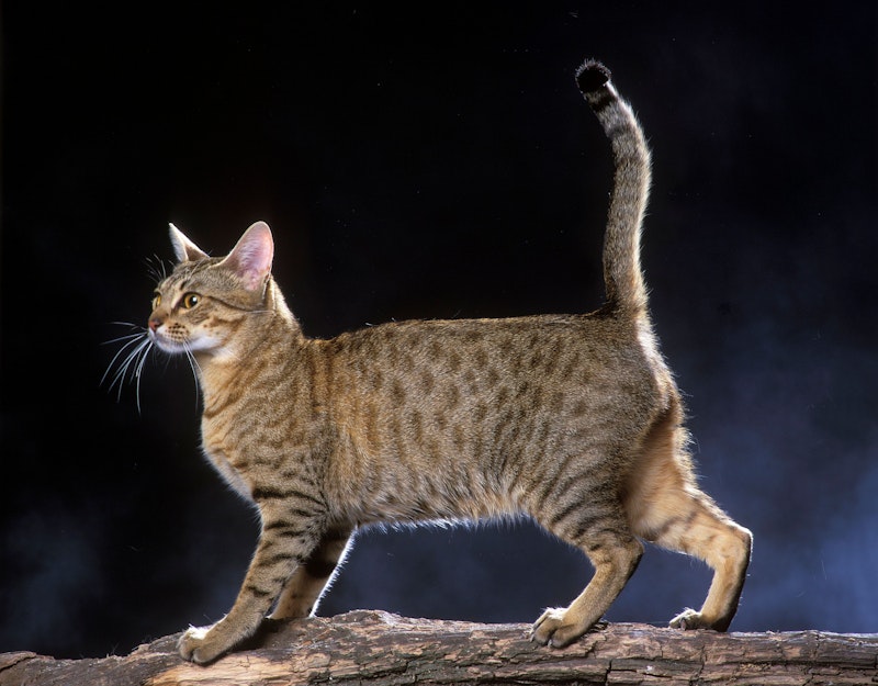 Kurzes Fell, Tupfen und von goldener Farbe, sollte die sogenannte "Ocicat" an die kleine Wildkatze, den Ozelot erinnern. Tatsächlich erhielt sie aber den Namen nur aufgrund der gewünschten, optischen Ähnlichkeit. Die Rasse entstand durch Verpaarungen von Siam- und Abessinierkatzen in den 60er Jahren in den USA und ist auch heute dort noch sehr beliebt.