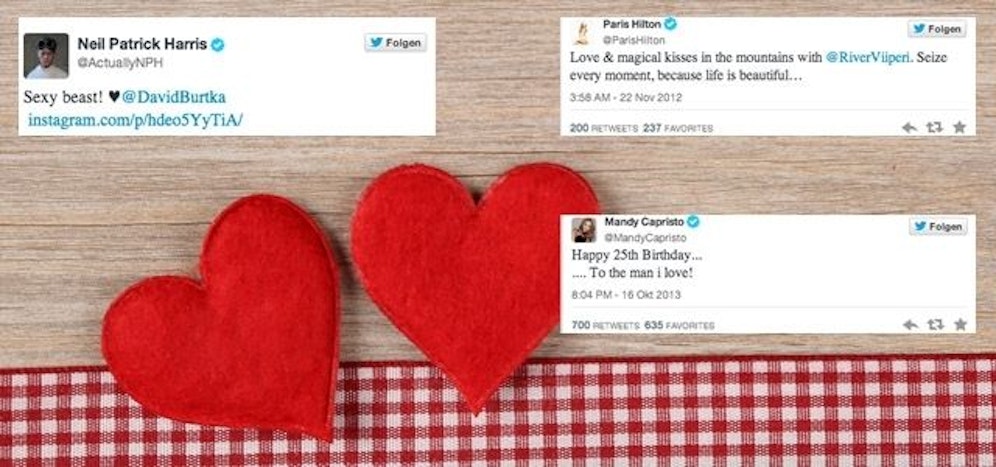 Es liegt Liebe in der Luft! Der Valentinstag ist alle Jahre wieder ein willkommener Anlass, um dem Partner oder der Partnerin eine Liebeserklärung zu machen. Die Promis geizen auch unterm Jahr nicht mit romantischen Worten und tragen ihre Liebsten via Twitter verbal auf Händen. Wir zeigen Ihnen, welche herzallerliebsten Twitter-Nachrichten die Stars und Sternchen in die Welt posaunen.