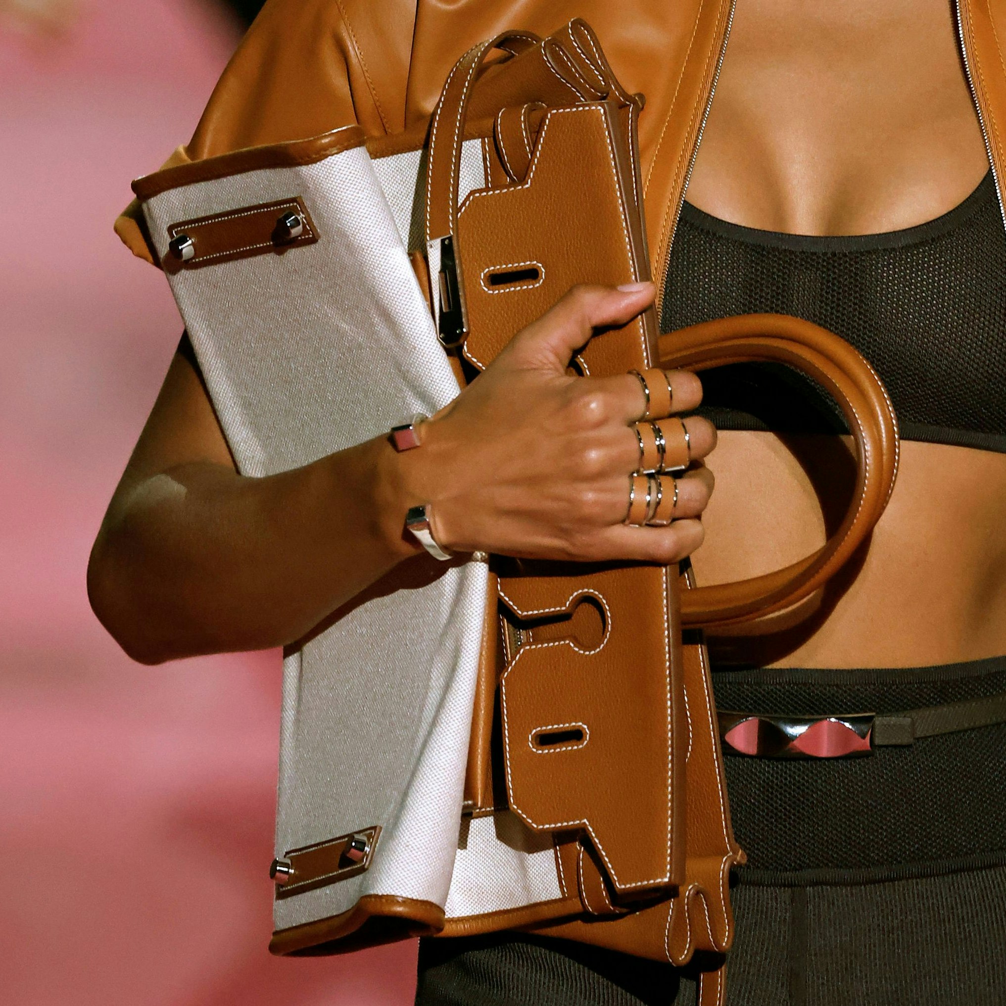 Hermès führt eine Neuinterpretation der Birkin ein. Das Modell ist aus Canvas und Leder gefertigt und "dreht die zeitlose Birkin 35 sprichwörtlich auf links." Ähnliche Modelle sieht man auch bei anderen Marken wie Saint Laurent.