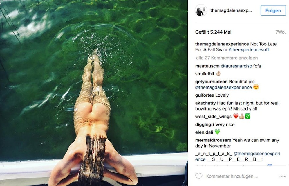 POsition Magdalena Wosinka ist unter Werbefotografen ein Star. Ihr Hobby? Sie fotografiert sich selbst, meist von hinten. 148.000 Fans sind erfreut. "Nacktsein macht alle Menschen gleich, niemand kann sehen, welcher Klasse man angehört", sagt die Polin. instagram.com/themagdalenaexperience