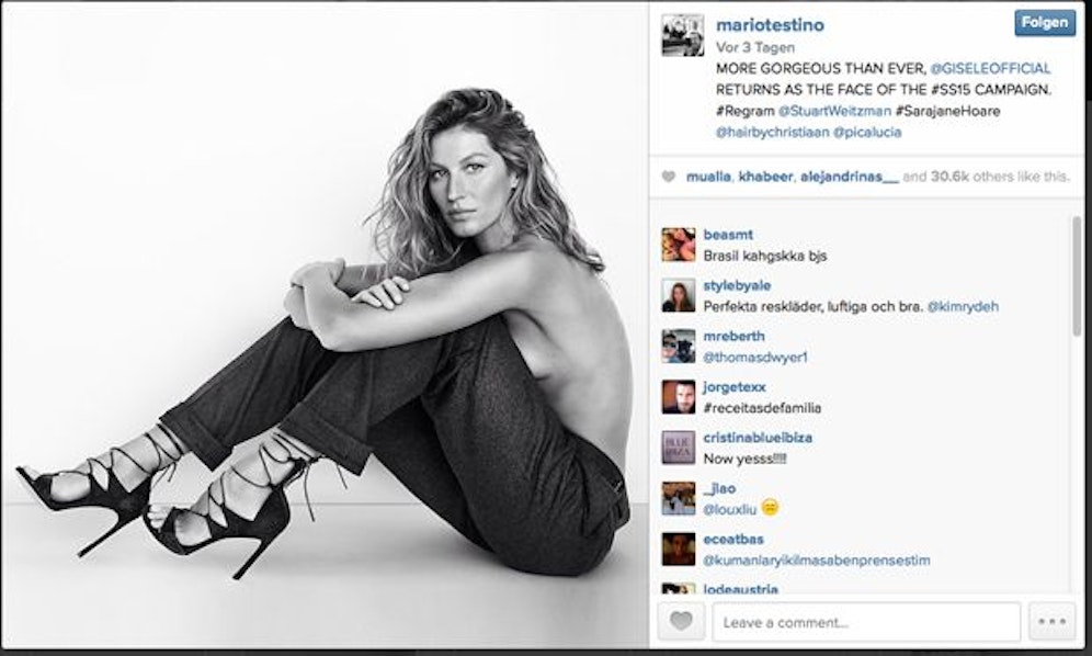 Oho-Oho. "Hinreißender als je zuvor", schwärmt Mario Testino von Model Gisele Bündchen. instagram.com/ mariotestino.