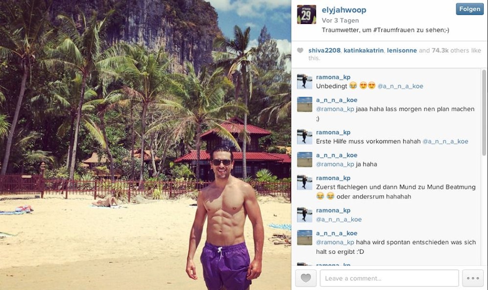 Schau! "Traumwetter, um Traumfrauen zu sehen", lacht hier Schauspieler Elyas M’Barek. Wau! Für Erwachsene gibt’s das schon. Nun haben auch Hunde ihren "Reichenteil" auf Instagram. Zum Wundern unter