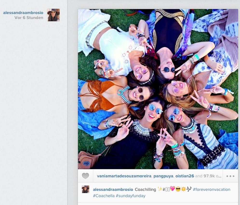 Damen-Tag. Beim Coachella-Festival (USA) feiert Model (braunes Top) gerade ihren 34. Geburtstag. instagram.com/alessandraambrosio