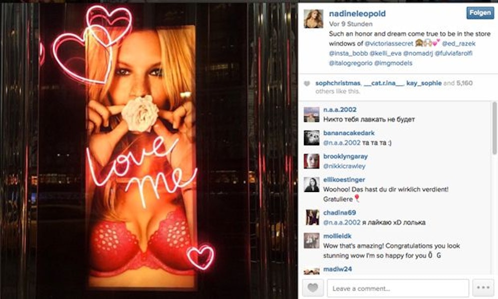 Guter Tag! "Ein Traum wird wahr", schreibt Austro-Model Nadine Leopold über ihr Foto in der Auslage von Victorias Secret. instagram.com/nadineleopold