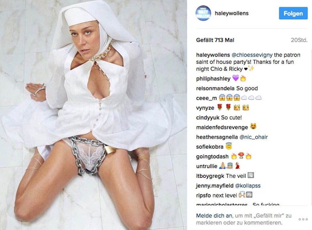 Untergriffig? Die New Yorker Star-Stylistin Haley Wollens (30) legte Schauspielerin und Ex-Model Chloë Sevigny (42) für ein Shooting kurzerhand einen "Keuschheitsgürtel" an. instagram.com/haleywollens