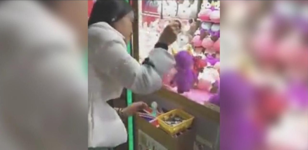 Greifautomaten sollen vor allem eines: dem Benutzer möglichst viel aus der Tasche ziehen. Diese Frau nimmt ihr Glück selbst in die Hand.