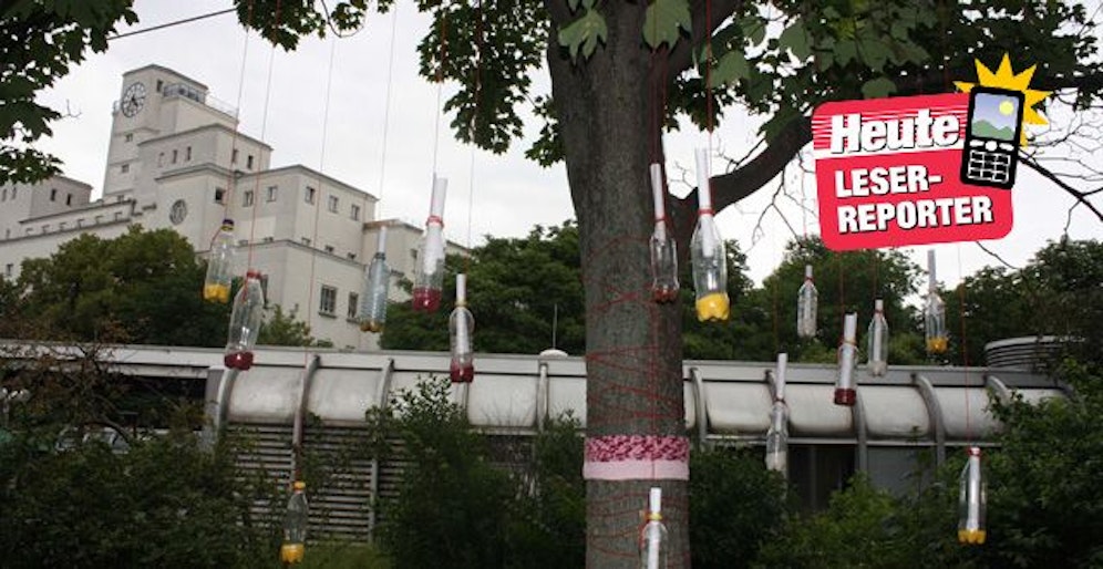 Mitten im Park über der U1-Endstation Reumanplatz steht dieser hübsche Flaschenpostbaum. Ein kreativer Künstler hat sich hier selbst verwirklicht und Gedichte in Plastikflaschen auf einem der Bäume aufgehängt.