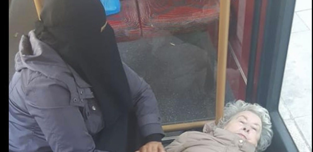 20 Minuten lang stand die verschleierte Frau der Pensionistin bei, erst als die Rettungskräfte eintrafen, lässt sie die Hand los.