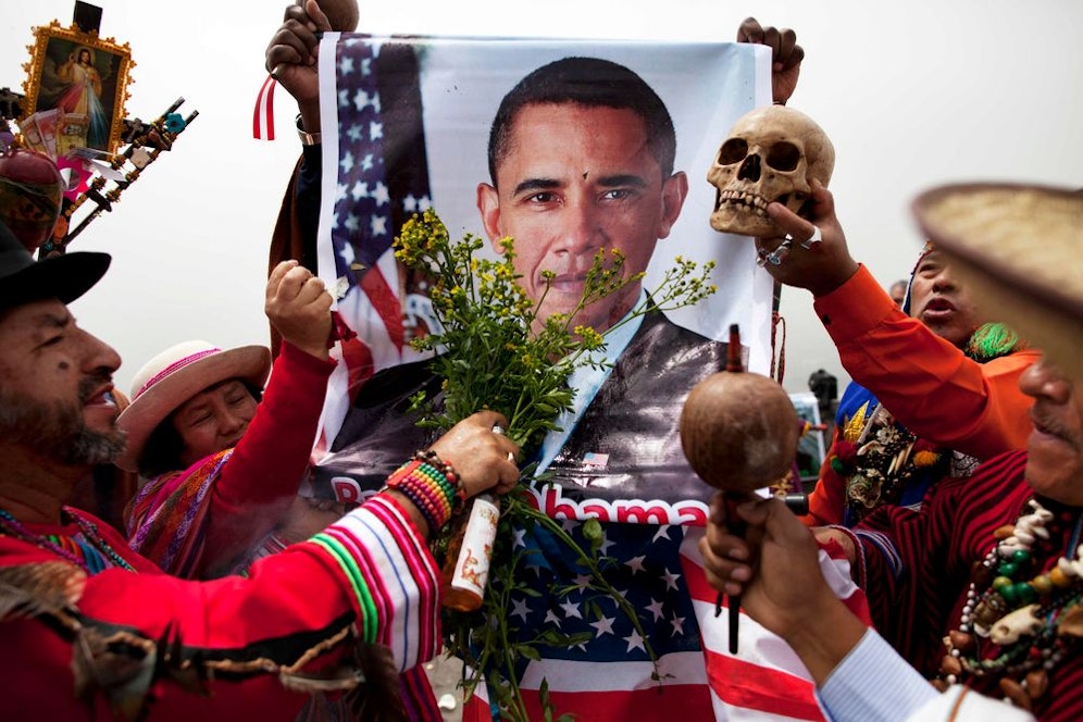 Auf einem Hügel nahe der peruanischen Hauptstadt Lima praktizierten Schamanen mithilfe von Blüten, Koka-Blättern und einem bewusstseinserweiternden Trank ein Wahrsage-Ritual. Sie bestreuten Fotos von Obama und Romney mit Blütenblättern und bliesen Tabakrauch darauf. Zudem kauten sie Koka-Blätter und tranken Ayahuasca, ein psychoaktives Gebräu. Dabei habe sich gezeigt, dass Obama in der Gunst der Apus, Hügelgöttern der indigenen Mythologie, oben stehe.