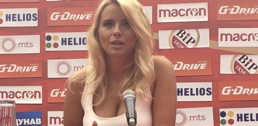 Sondern Roter-Stern-Pressesprecherin Tatjana Sajkovic. Sie erschien im engen Top mit tiefem Ausschnitt. Im Video ist zu sehen, wie Coach Milojevic betont versucht, nicht in ihre Richtung zu schauen. Es ist nicht der erste Auftritt der Medienbetreuerin in knappen Outfits, wie auch in den sozialen Medien zu sehen ist ...