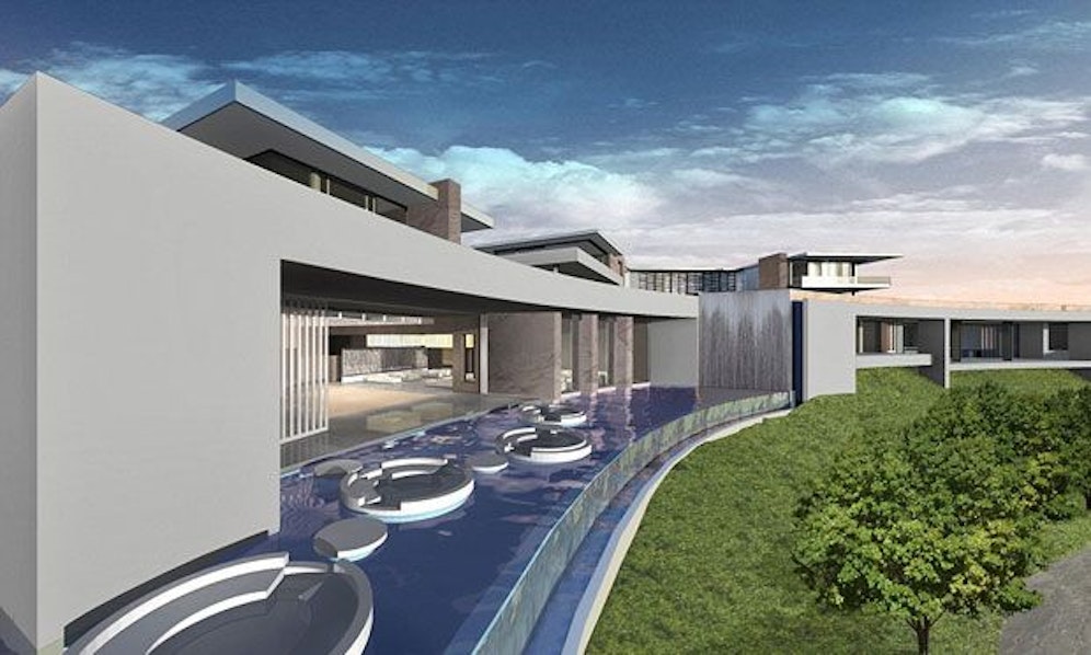 Gebaut wird die Villa auf einem 1,6 Hektar großen Gelände, Bauherr ist Filmproduzent und Immobilienspekulant Nile Niami. Fertig soll die 460 Millionen Euro teure Villa in zwei Jahren sein – bereits jetzt sucht Niami einen Käufer.