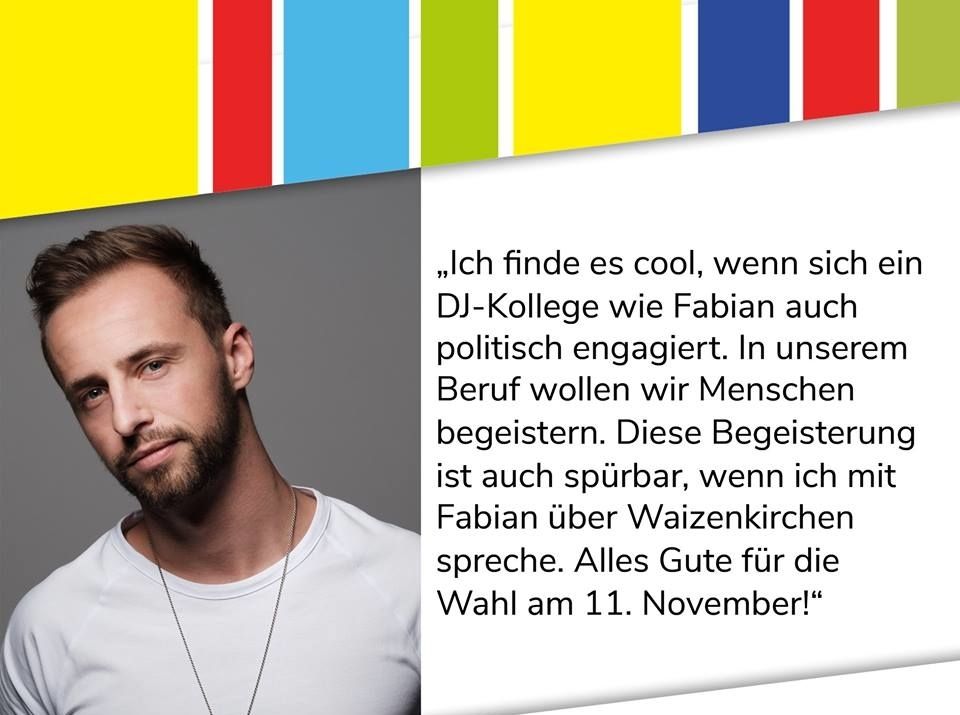 Fabian Grüneis ist aber auch sonst alles andere als ein alltäglicher Kandidat für den Posten eines Ortschef. Als "DJ Greenice" heizt der Jungpolitiker an den Turntabeln dem Partyvolk ein. Und auch in diesem Bereich ist Grüneis durchaus erfolgreich. So legte er schon beim Electric Love Festival am Salzburgring auf.