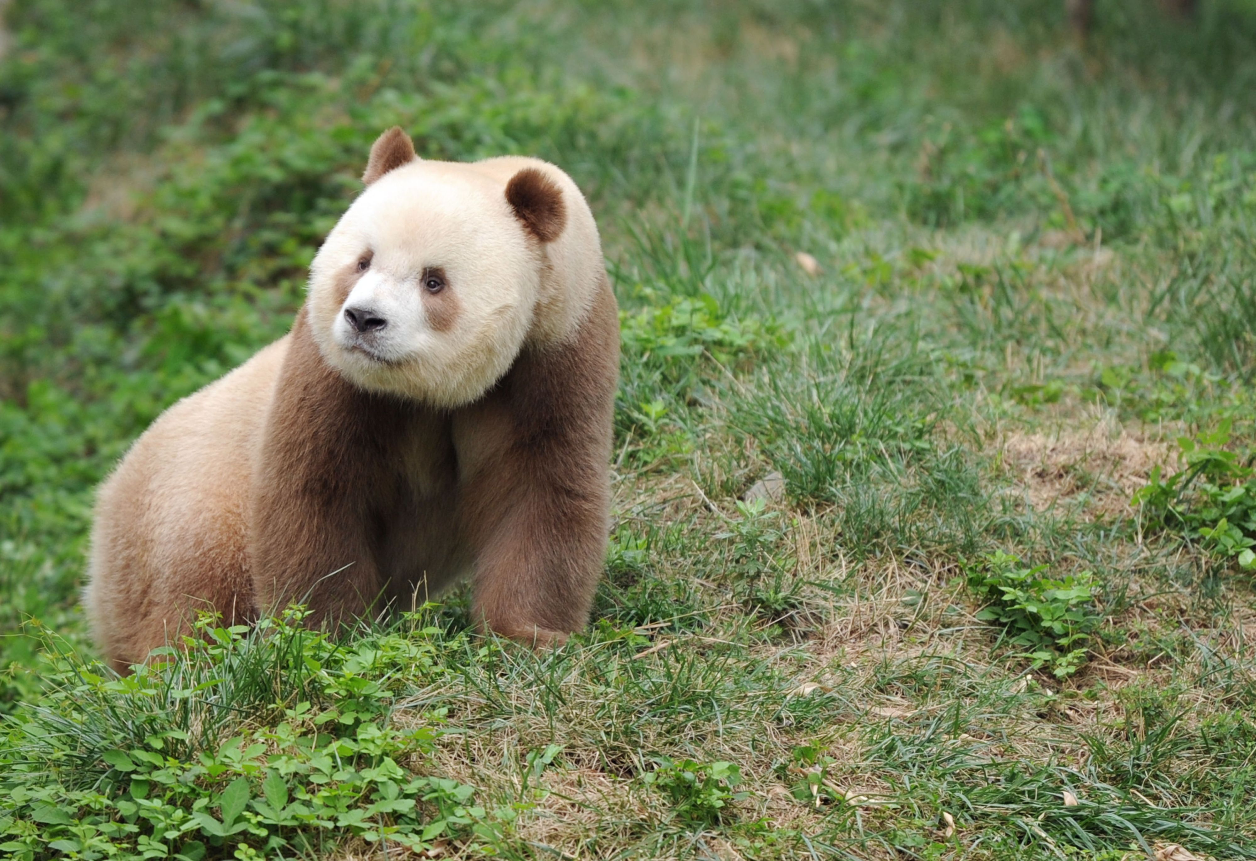 Das milde kakaobraun sieht ein bisschen so aus, als wäre der braune Panda einmal zuviel gewaschen worden, doch es handelt sich hierbei um einen hübschen Gendefekt. In Gefangenschaft gibt es weltweit derzeit nur ein braunes Exemplar: "Qizai" aus dem Panda-Forschungszentrum Qinling in Xi’an (Provinz Shaanxi in China).