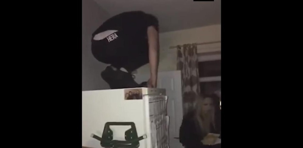 Doch der Plan geht nicht ganz auf: Der Scherzbold verliert sein Gleichgewicht, gerät mit dem Kühlschrank ins Wanken und fällt zu Boden. Das ganze wurde mit einem Smartphone aufgezeichnet und sorgt nun im Netz für Lacher. (mz)