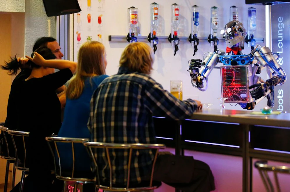 Einen Hauch von Science-fiction verbreitet dieser Barkeeper: "Carl" steht in der "Bar der Zukunft" im thüringischen Ilmenau hinter'm Budel. Der Roboter kann nicht nur Getränke mixen, sondern sogar einfache Gespräche mit Gästen führen.