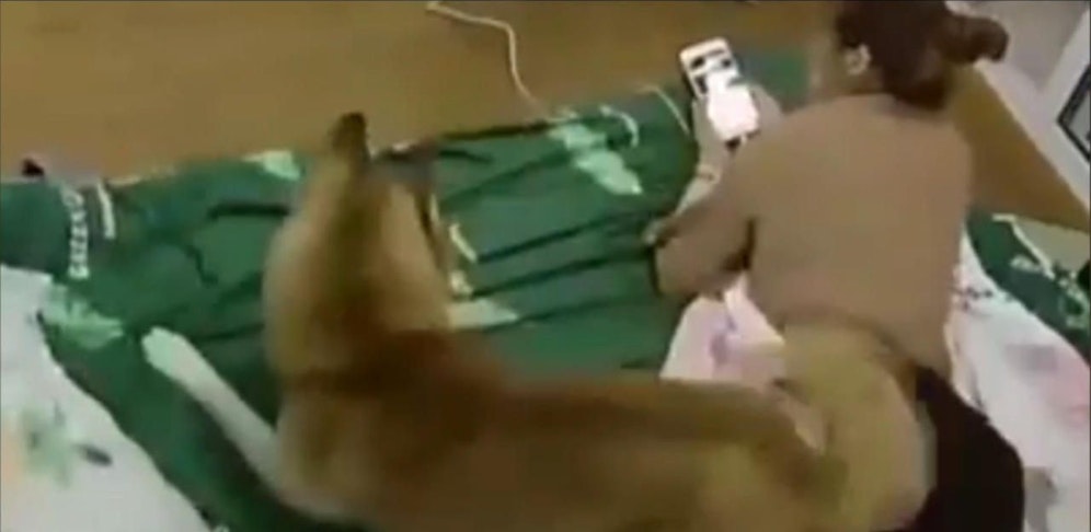 Der Hund tobt auf dem Bett herum wie ein Berserker – und treibt sein Frauchen damit in den Wahnsinn.