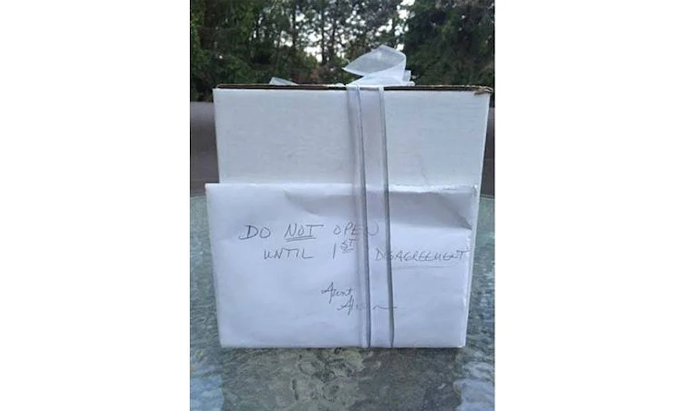 Kathy und Brandon Gunn gaben sich vor neun Jahren das Ja-Wort. Das von Kathys Großtante öffneten sie jedoch erst vor kurzem. Das geheimnisvolle Packerl war mit "Nicht öffnen! Wartet bis zu eurem ersten Streit" beschriftet. Was die beiden berührte, war nicht nur der Inhalt, sondern auch, was das Geschenk sie über sich selbst gelehrt hat.