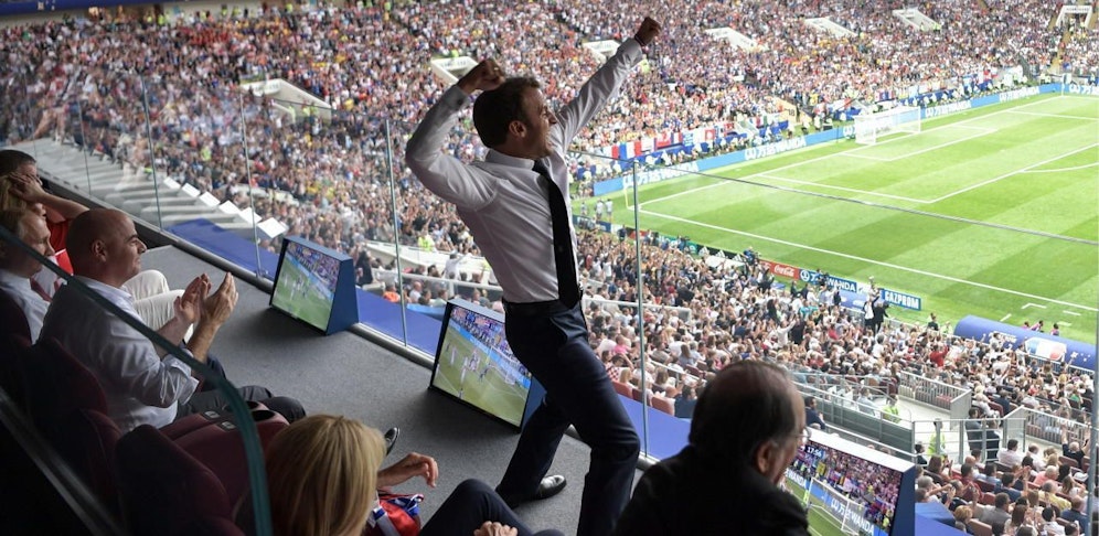 Macron verfolgte den 4:2-Sieg auf der Tribüne neben Russlands Staatspräsident Wladimir Putin, Fifa-Präsident Gianni Infantino und seiner kroatischen Amtskollegin Kolinda Grabar-Kitarovic. Vor dem Anpfiff posierten die vier noch für ein Foto für die kroatische Fußball-Legende Davor Suker.