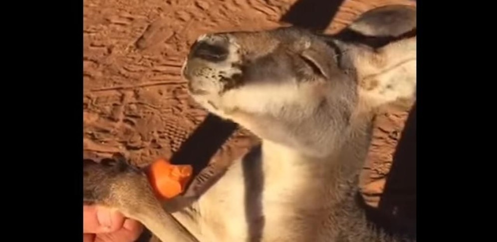 "Mmmh, schmeckt das lecker", dachte sich dieses süße Känguru. Der Gesichtsausdruck sorgt im Internet derzeit für Lacher. Man sieht dem Beuteltier richtig an, wie genüsslich es das Gemüse verspeist, als ein Mann es mit der Lieblingsspeise füttert. Auf der Speisekarte stehen Karotten eben ganz weit oben. (mz)