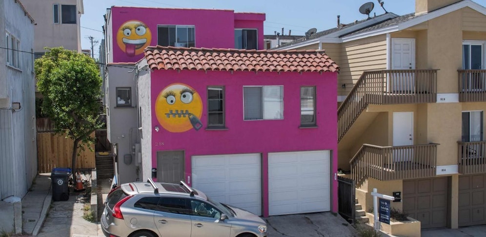 Nur wenige Wochen später war das Haus neu gestrichen. Es sticht nun in grellem Pink und zwei Emojis mit künstlichen Wimpern heraus. Die Nachbarn glauben, dass sich die Besitzerin damit über sie lustig machen will.