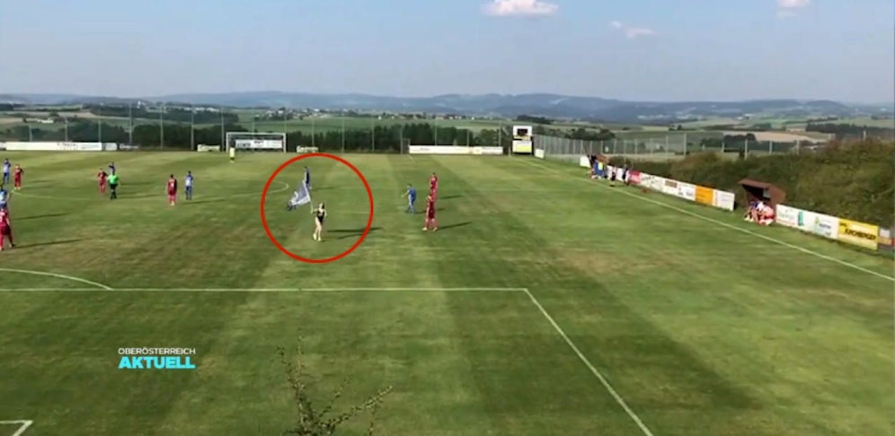 Zugegeben nicht nackt, aber zumindest im Badeanzug schickt die Disco eine Mitarbeiterin mit Flagge auf die heimischen Fußballfelder.
