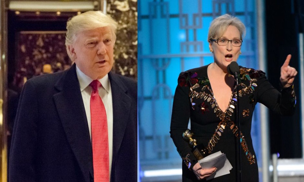 Der 70-Jährige reagiert damit auf Streeps Aussagen, die sie im Rahmen der Golden Globes Verleihung unter Tränen tätigte. In ihrer Rede rekapitulierte sie ihren persönlichen Tiefpunkt des diesjährigen Präsidentschaftswahlkampfs in den Vereinigten Staaten: "Es gab dieses Jahr eine Performance, die mich umgeworfen hat", so Streep.