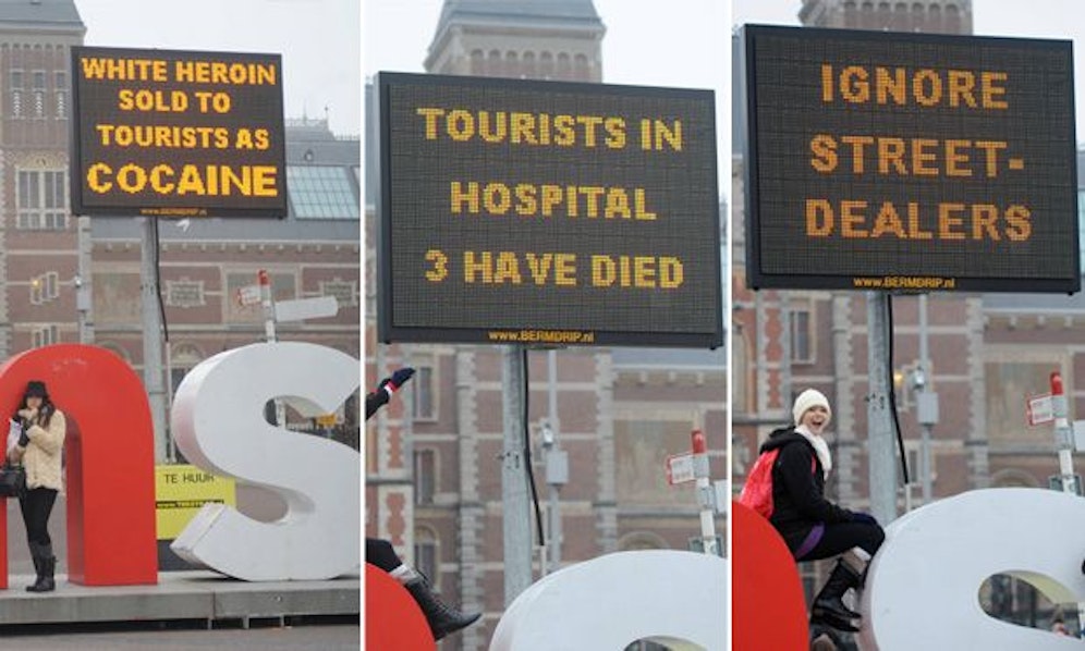 Die Stadt warnt Urlauber davor, Drogen von Straßendealern zu kaufen und ungetestet zu konsumieren. Große Videoschirme warnen vor der Gefahr, auch Poster, Infoblätter und die sozialen Medien leisten Aufklärungsarbeit.
