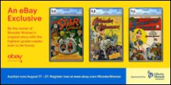 Heute beginnt auf eBay (17:00 Uhr) die Versteigerung von drei der seltensten "Wonder Woman" Comicbücher aller Zeiten!