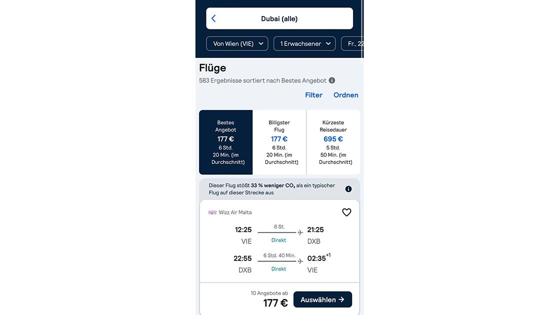 Fest steht jedenfalls, ein Flug nach Dubai kostet weniger als die Süßigkeit auf eBay. So finden sich auf Buchungsplattformen an den November-Wochenenden sogar zahlreiche Direkt-Flüge von Wien nach Dubai und zurück bereits ab 177 Euro.