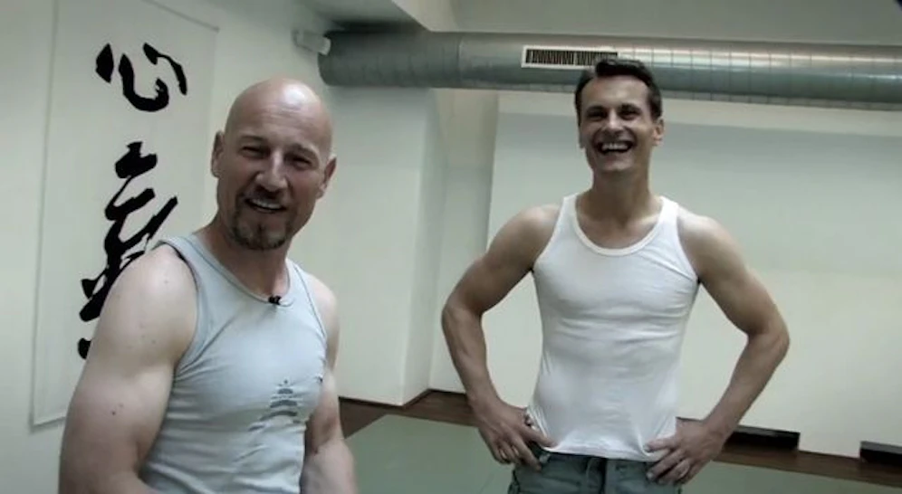 Shinergy-Kampfsportler Ronny Kokert und Kabarettist Roland Düringer ließen ihr gemeinsames Training – ganz ohne Geräte – mitfilmen und machten daraus "Der bewegte Krieger"-Videoclips!