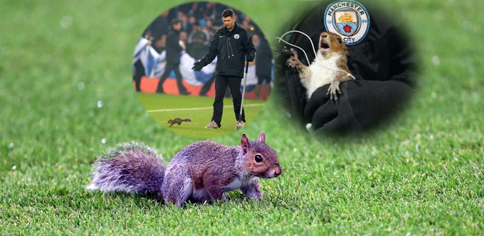 Ein flauschiger Flitzer sorgte für eine Spielunterbrechung in Manchester. Ein Eichhörnchen lief auf das Feld und hatte seinen Spaß mit den Star-Kickern.