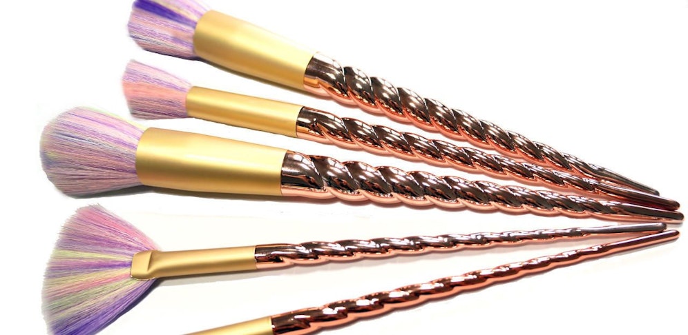 Trend rund um die Fabelwesen macht auch vor dem Badezimmer nicht halt. Der neueste Streich: Make-Up Pinsel mit Regenbogenfarben und dem typischen, gewundenen Horn als Pinselstift. Ein absoluter Eyecatcher!