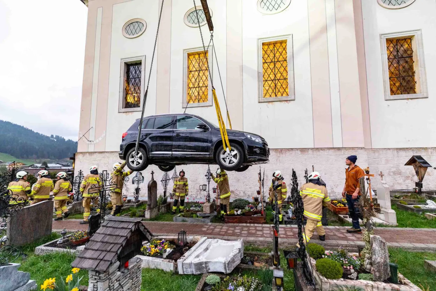 Schließlich blieb das Fahrzeug mit einer gebrochenen Hinterachse und "aufgesessen" zwischen den Gräbern stecken. Die Feuerwehr Flachau rückte aus und konnte mittels eines externen Autokrans das Fahrzeug bergen. Ersten Informationen zufolge hatte die Dame einen ärztlichen Notfall.
