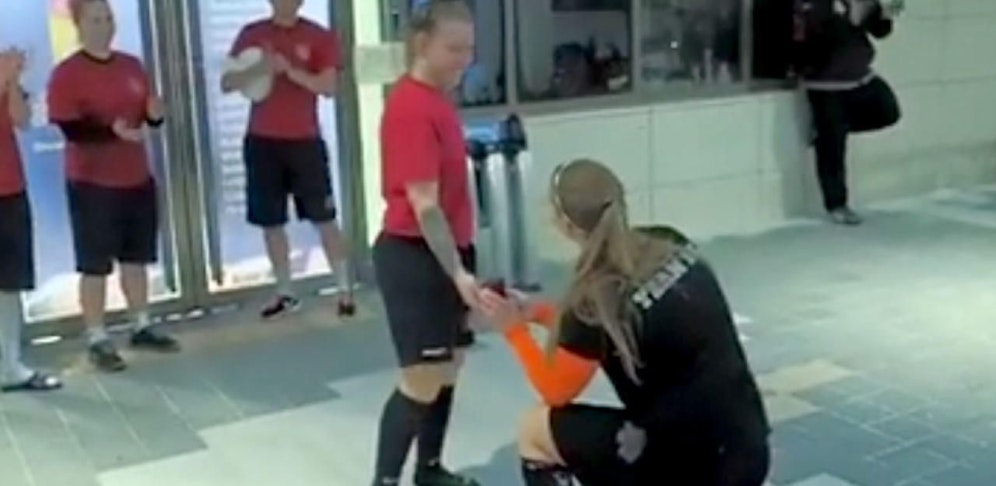 Das holländische Frauen-Eishockey-Nationalteam besiegte an der WM der Division II in Südkorea in seinem ersten Spiel Grossbritannien 5:4. Danach trafen sich die beiden Teams in den Katakomben. Und da übernahm Cloë Keijzer das Zepter. Während sich die holländischen Spielerinnen auf einer Linie formierten und ihre speziellen T-Shirts präsentierten – darauf stand "#6 Marry me?" –, kniete sich Keijzer vor der britischen Stürmerin Katie Henry nieder und machte ihr einen Heiratsantrag.